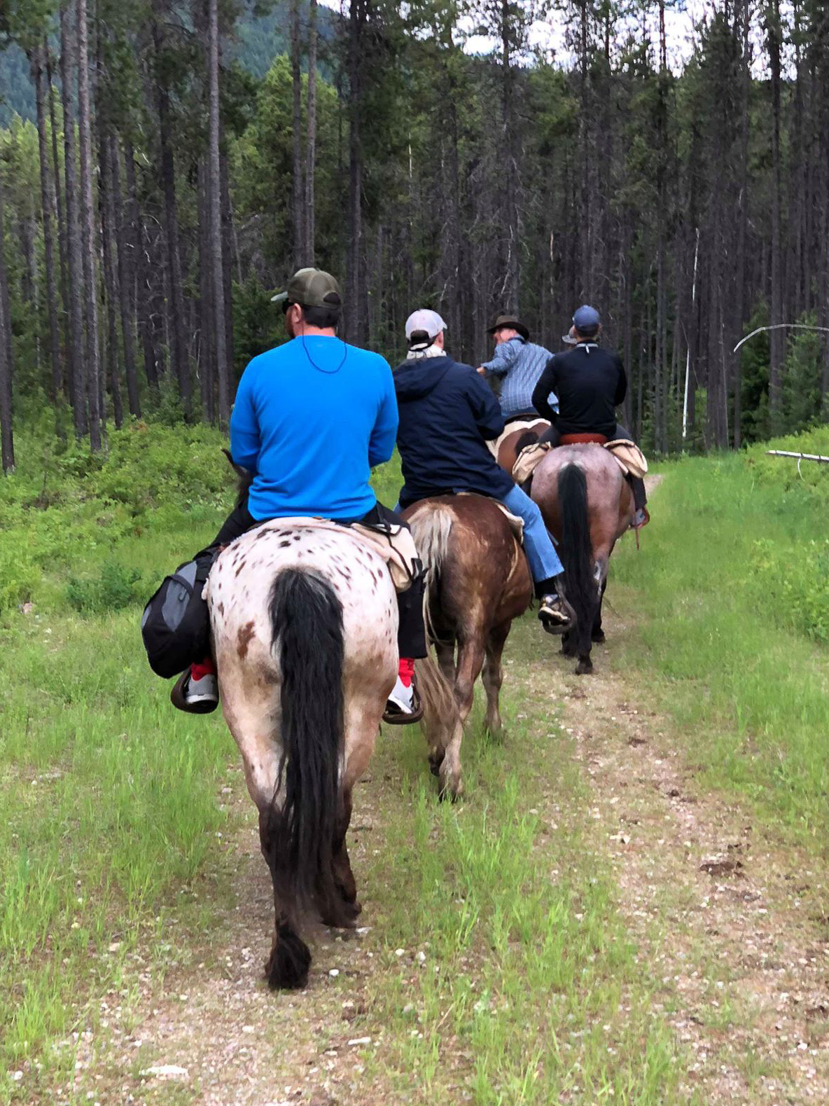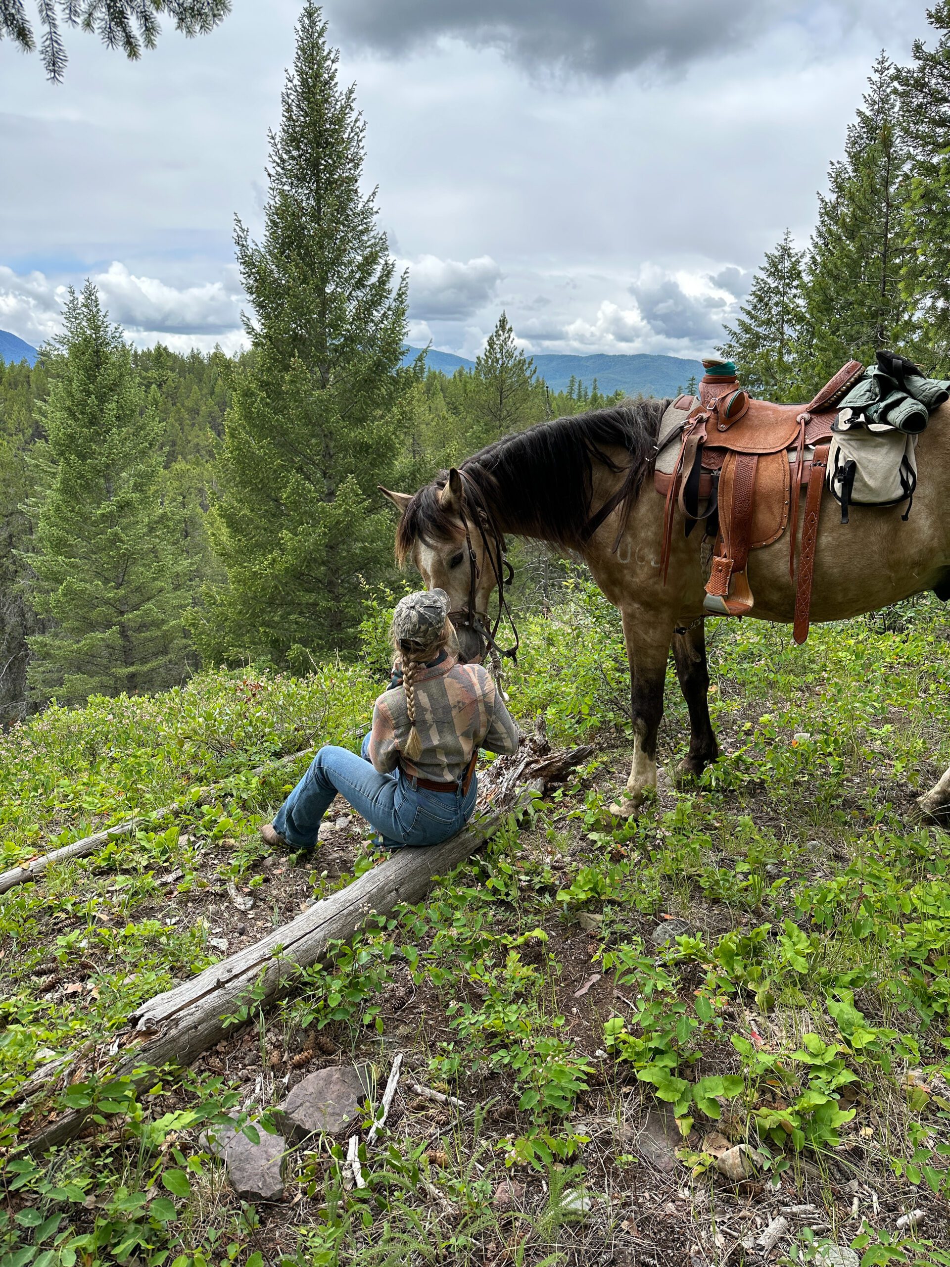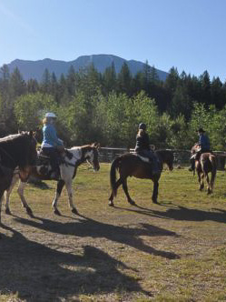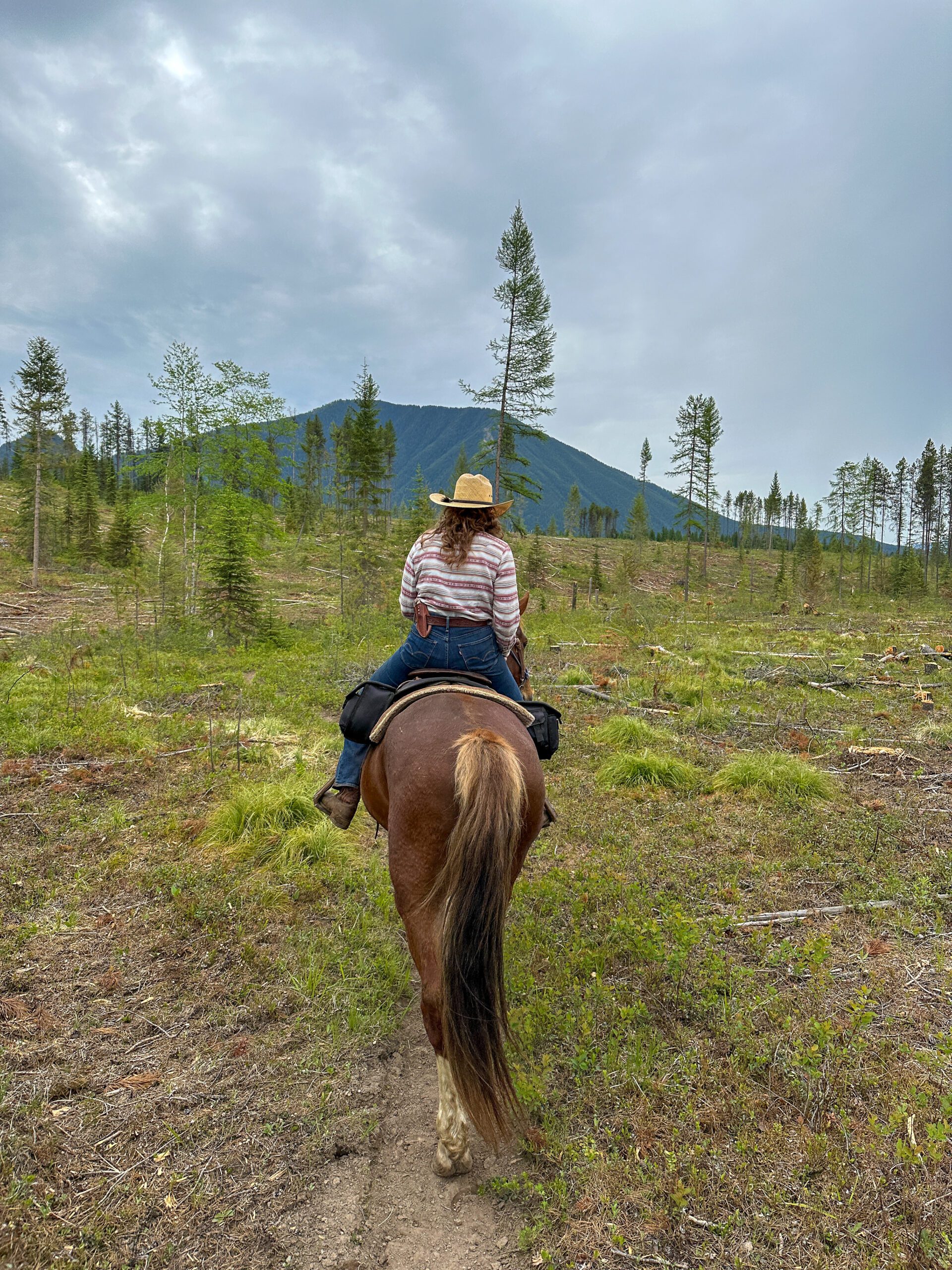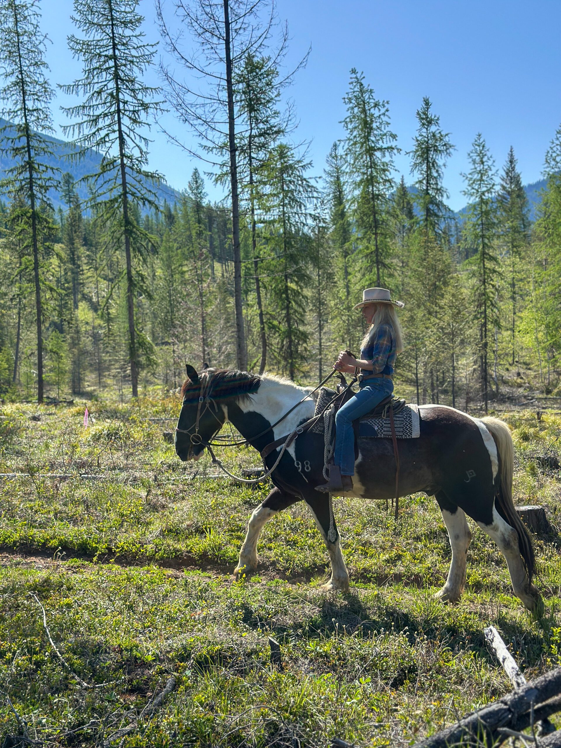 This three hour trail brings you further into Flathead National Forest and affords views of Strawberry and Desert Mountain. Traverse roughly 2.5 miles of lodgepole pine forest, sections of clear cutting, and lush cottonwood stands as you gently ascend to the overlook. Dismount and stretch your legs while enjoying the views of Desert Mountain and Strawberry Mountain. Saddle up and continue another couple of miles on this loop back to the corral. Keep an eye out for huckleberries, deer, and bear!